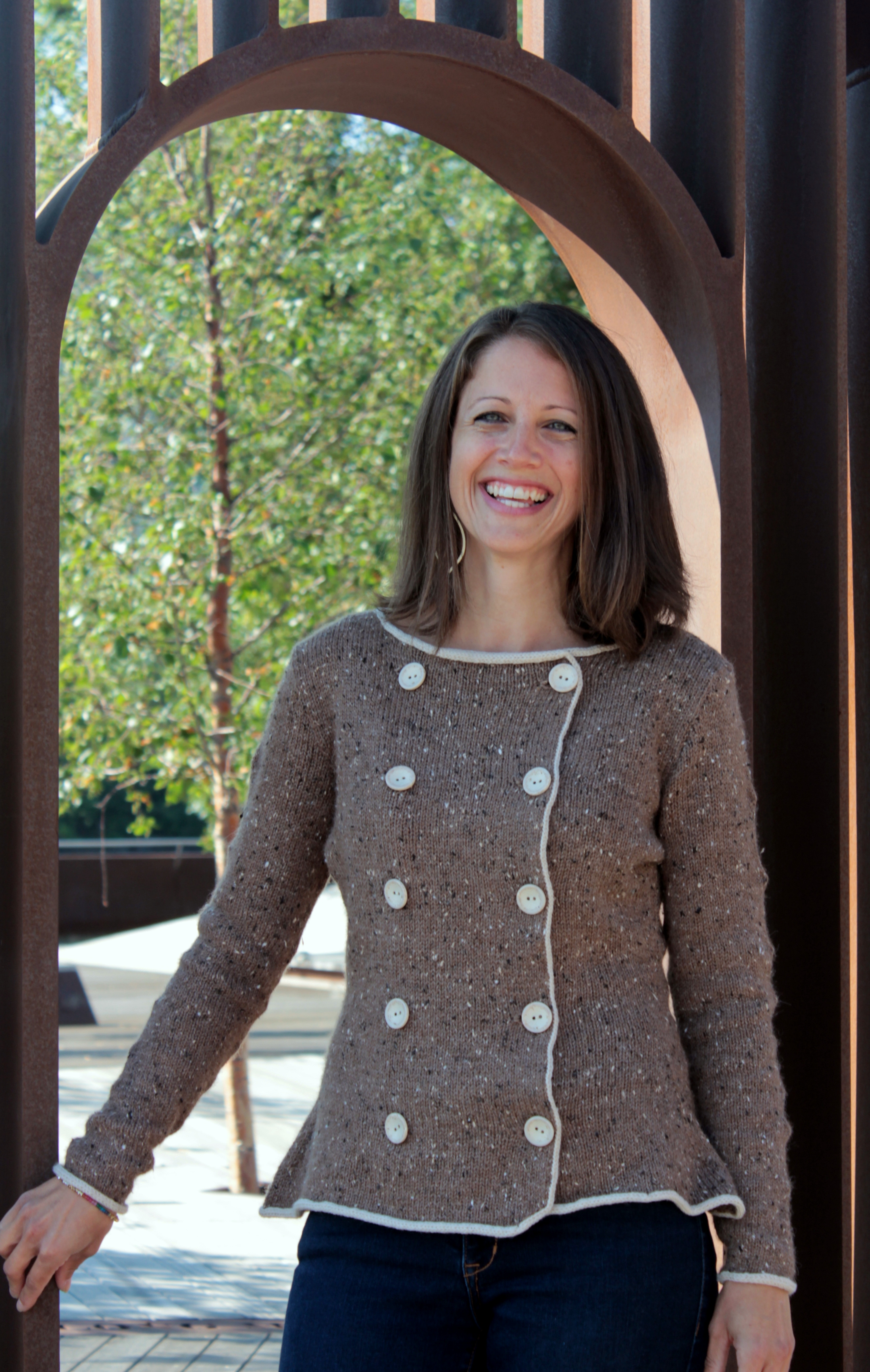 It’s new pattern time folks! Here we have the lovely Jennifer (my sister) modeling the Kensington Tweed, knit up in Knit Picks City Tweed DK and Knit Picks Palette.